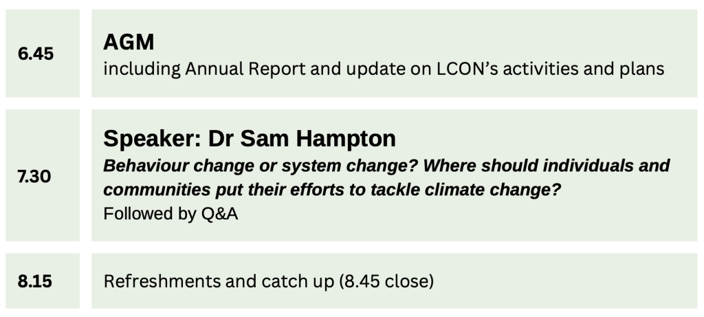 All are welcome, but voting at the AGM is limited to LCON members. If you would like to join LCON as a member to vote at future AGMs, please follow this link and complete the application form.